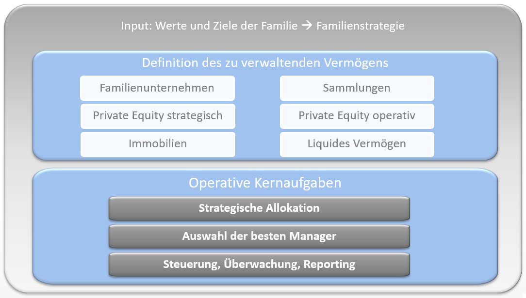 Die Kernaufgabe eines Family Office: Verwaltung des Vermögens mit dem Ziel das Lebenswerk und das Wohl der Familie zu sichern.